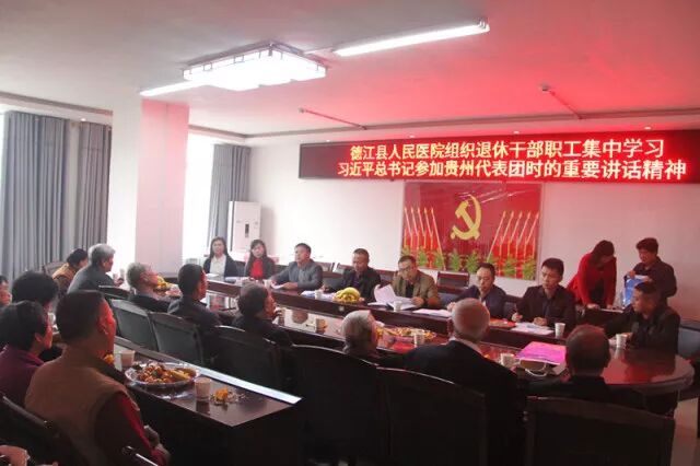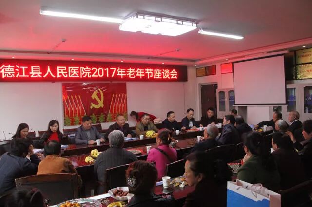 10月26日,农历九月初七,在重阳节到来之际,德江县人民医院组织退休职工召开老年节座谈会。副院长覃礼忠、苏俊,院党总支书记、专职纪检员向中毫及院办、党建办、护理部、总务科、文化办等部门负责人参加座谈。工会主席安思国主持。