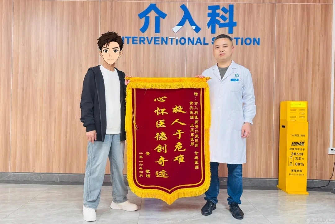 手术由介入科团队高效执行,历时仅50分钟便成功止血,患者术中状态平稳,术后病情迅速好转。在ICU及后续科室的精心治疗与护理下,患者恢复良好,康复出院。患者家属黄先生为表达对介入科及全体参与救治医护人员的深切感激,特意定制锦旗赠予介入科团队。